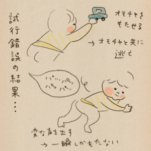 おもちゃを持たせることや声で気をひくことを試しましたが